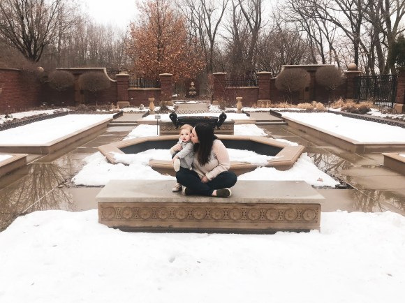 This past weekend we took an impromptu trip to Lauritzen Gardens to check out their new dinosaur exhibit! We took full advantage of the “heat wave” & it was so refreshing to get out of our routine at home & spend some time the three of us outdoors. Quincy however, could careless about the dinosaurs, she was more interested in the melting snow & every single tiny rock on the ground. But hey, I’m still going to call it a win!
