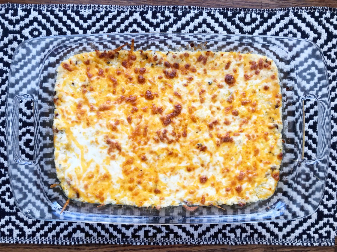 STEP SEVEN: Cover the dish with foil & set your timer for 25 minutes. DING DING – timer’s done, so let’s remove the foil & let that baby bake until the cheese is brown & bubbly. I ended up turning our broiler on low for a few minutes.